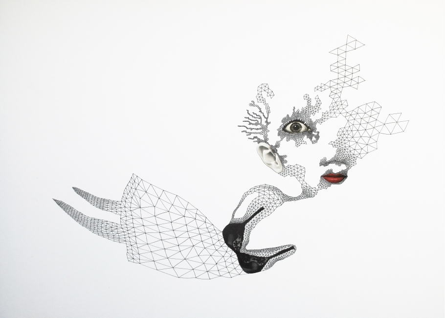 O.T.(doli_2) / 2016, adhesive labels on paper (Haftetiketten auf Papier), 40 x 50 cm